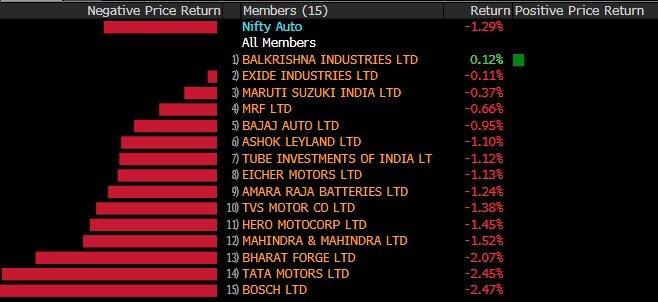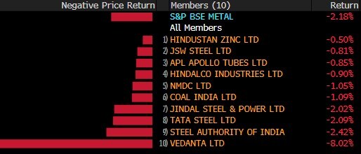 The broader indices underperformed their larger peers with both the S&P BSE Midcap and S&P BSE Smallcap slipping over 1.6%. All the 19 sectoral indices compiled by BSE Ltd. declined with S&P BSE Metal and S&P BSE Auto index shedding over 2%.