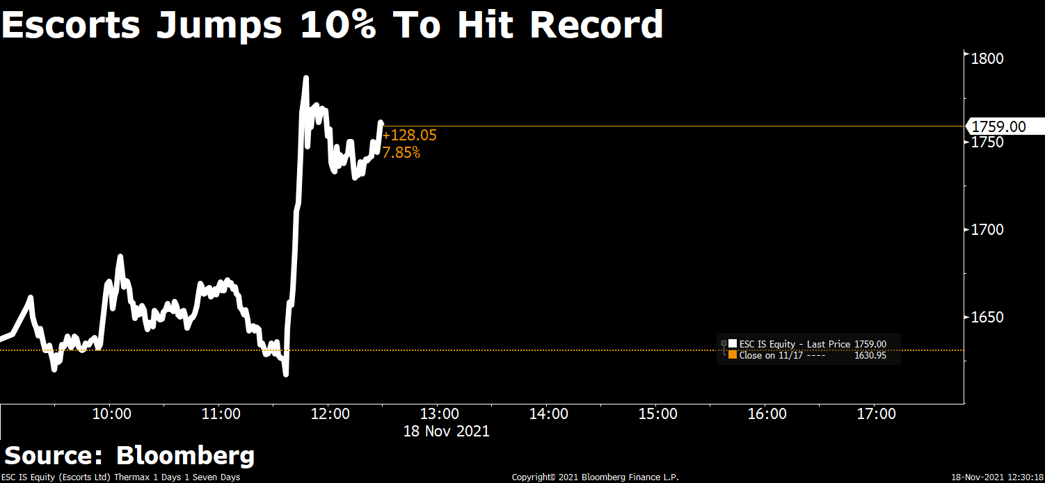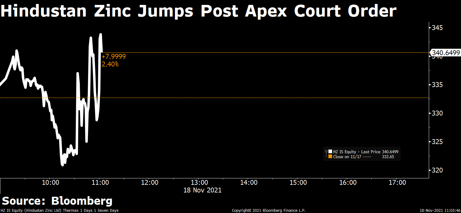 Shares of Zomato Ltd. rose 3.4% to Rs 161.85 apiece after the company's step down subsidiary, Zomato UK was dissolved effective from November 16, 2021. Reports also indicated that Zomato may invest $500 million in Grofers.