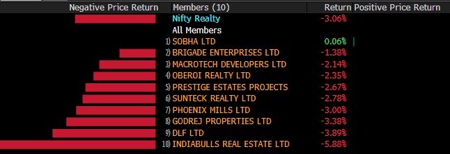 The S&P BSE MidCap almost mirrored its larger peers while the S&P BSE SmallCap outperformed, with losses as much as 1.4%. All the 19 sectoral indices compiled by the BSE Ltd. declined with S&P BSE Information Technology, Consumer Durables, Realty and Teck indices shedding over 3%.