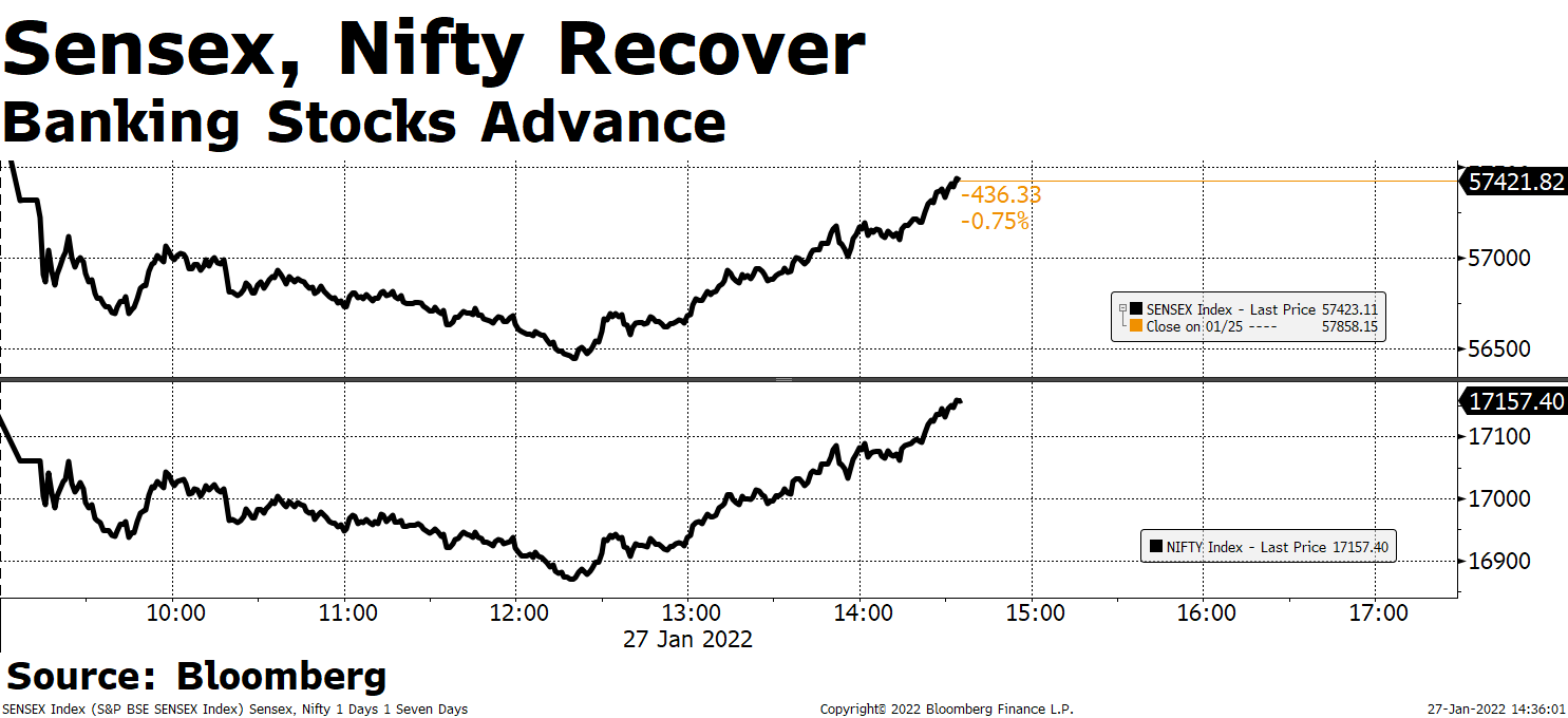 Markets are down mainly on the Hawkish Fed Outlook. Mr Powell, chairman of the Federal Reserve, signalled a rise in interest rates in March and predicted the possibility of an unexpectedly aggressive policy tightening. This has led to an increase in the 10-year bond yields of the US and the dollar index, which is negative for emerging markets. Tensions between Russia and Ukraine have pushed up crude oil prices. With all these headwinds, the market today is facing a monthly expiration date for January FNO contracts, which has added to the volatility.Shrikant Chouhan, Head of Equity Research (Retail), Kotak Securities Ltd.