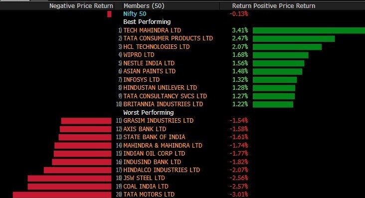 The S&P BSE Sensex fell 0.21% to 55,464.11. The NSE Nifty 50 declined by a similar magnitude to 16,528.05 before paring the losses. Infosys Ltd. contributed the most to the index gain, increasing 0.5%. Tech Mahindra Ltd. had the largest increase, rising 3.2%.