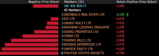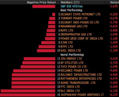 The broader indices underperformed their larger peers with S&P BSE MidCap shedding 3% and S&P BSE SmallCap declining 4%. All the 19 sectoral indices compiled by BSE Ltd. declined with S&P BSE Realty index slipping over 4%.
