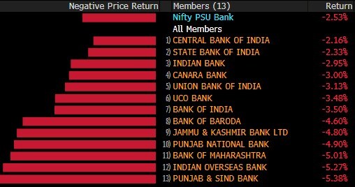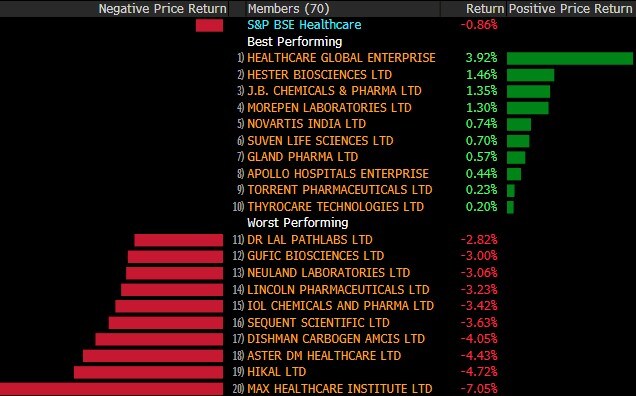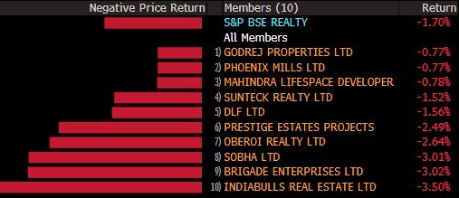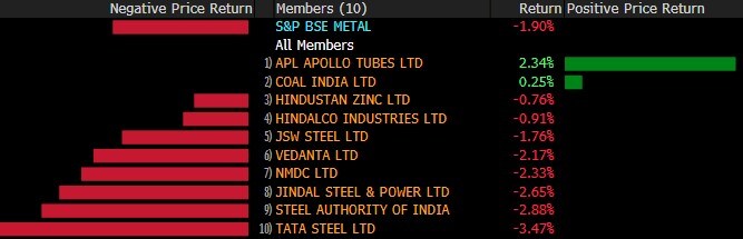 The broader indices underperformed larger peers with the S&P BSE MidCap and S&P BSE SmallCap shedding over 1%. Sixteen of the 19 sectoral indices compiled by the BSE Ltd. declined, with S&P BSE Metal index falling nearly 2.5%.
