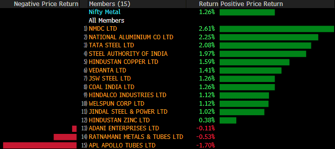 The broader indices outperformed their larger peers with S&P BSE MidCap dropping 0.1% and S&P BSE SmallCap gaining 0.33%. Eleven of the 19 sectoral indices compiled by BSE Ltd. declined with S&P BSE Auto shedding 1%. On the flipside S&P BSE Metal added over 1.5%.