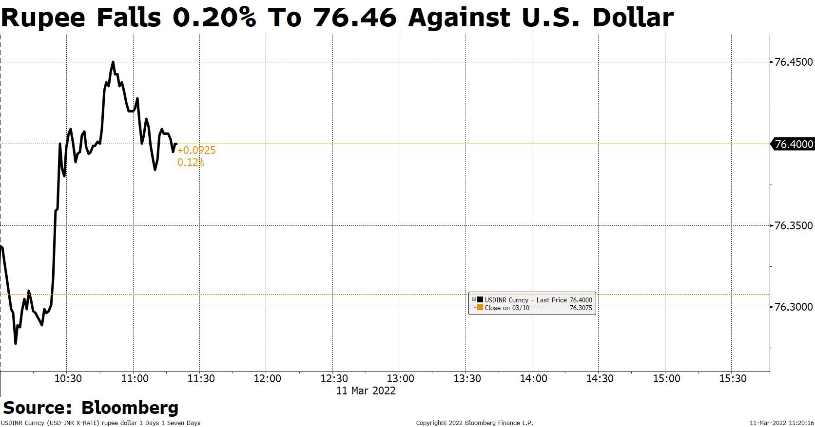 • USD/INR fell 0.3% to 76.3075 on Thursday; pair is up 0.2% on the week and ~2% in the past three weeks