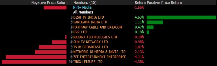 The market breadth was skewed in the favour of bears. About 1,070 stocks advanced, 1,411 declined and 114 remained unchanged.
