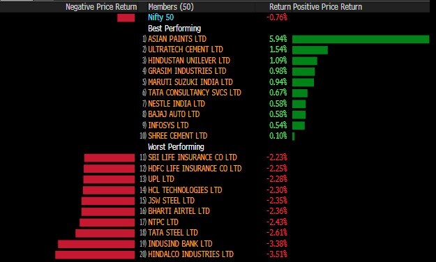 In India’s earnings season, five of the six Nifty 50 members that have announced results so far fell short of analysts’ estimates. HCL Technologies Ltd. fell 2% after posting profit and sales that missed expectations after yesterday’s market close. Bajaj Finance Ltd. and Asian Paints Ltd. are scheduled to announce results later today.