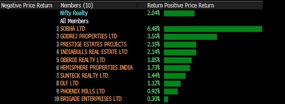 Eight of the 19 sectoral indices compiled by the BSE Ltd. climbed led by a gauge of real estate companies. The S&P BSE Energy index was the worst performer, down 1%.