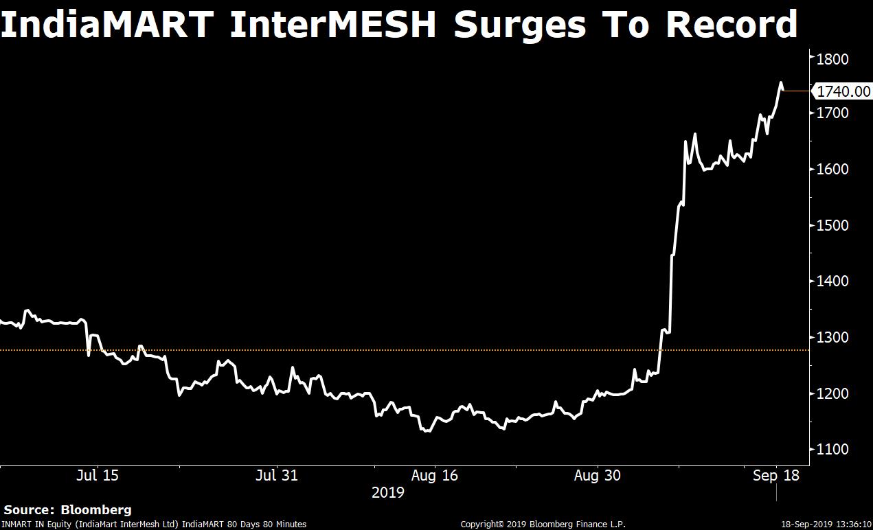 Shares of IndiaMART InterMESH extended gains for the fifth consecutive trading session. The stock rose as much as 5.4 percent to hit an all-time high at Rs 1,783.40.