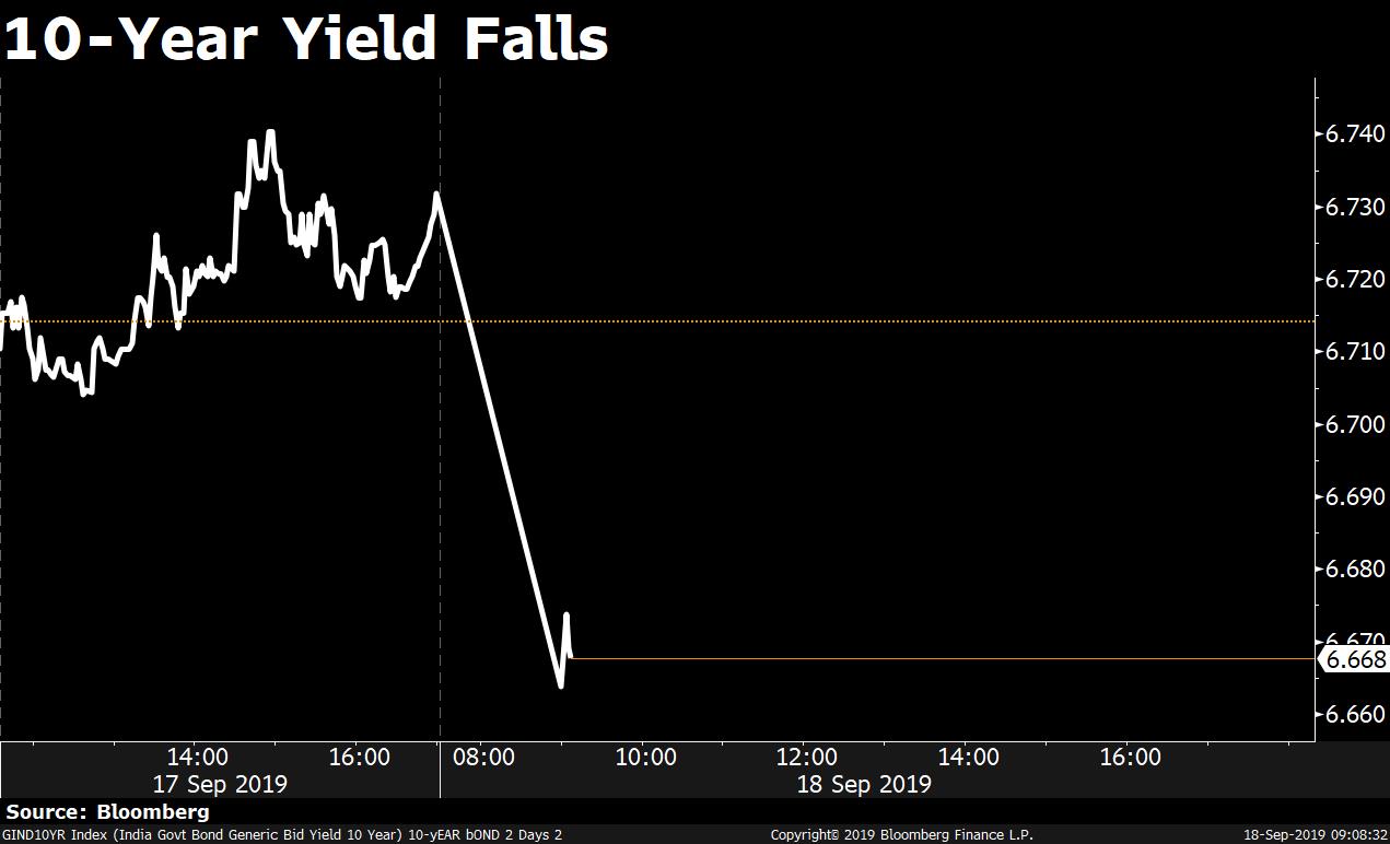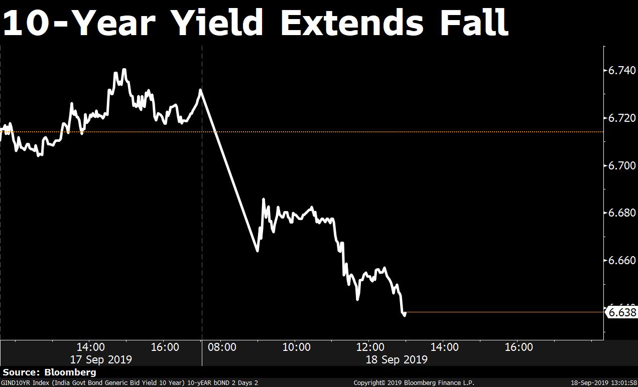 The yield on the 10-year note extended opening declines. It fell as much as 10 basis points to 6.63 percent.