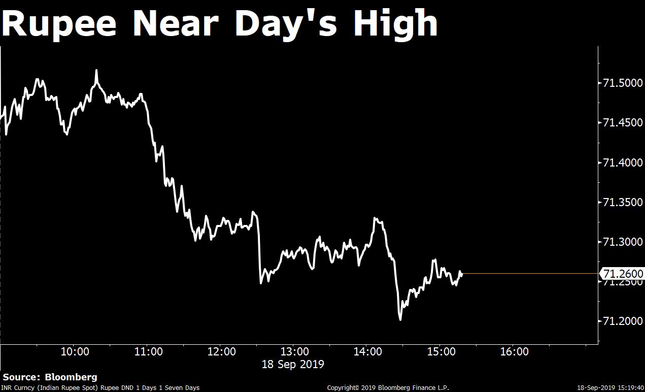 The Indian rupee traded near day’s high against the U.S. dollar.