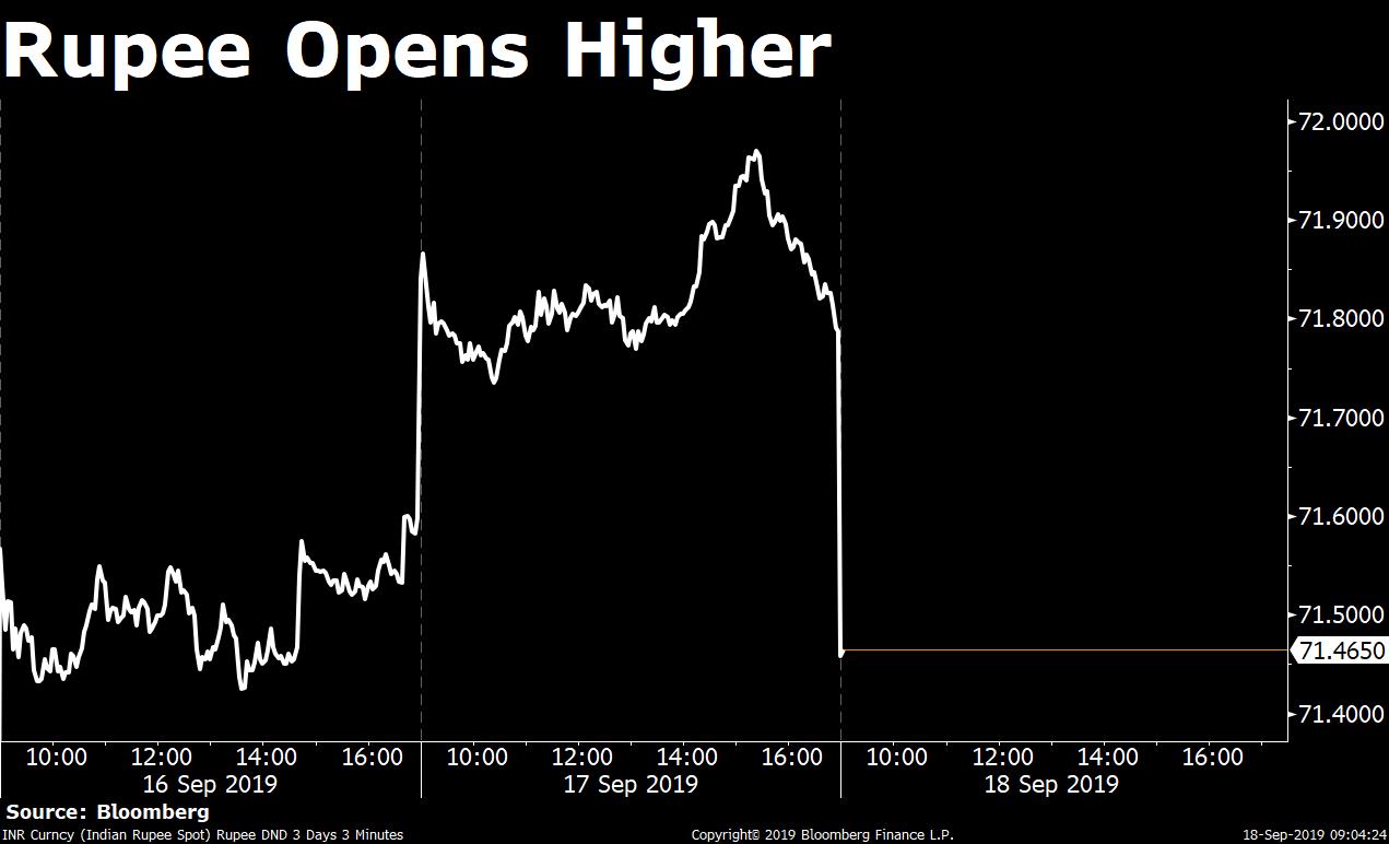The Indian rupee opened higher against the U.S. dollar. The home currency appreciated as much as 0.49 percent to 71.43 against the greenback.