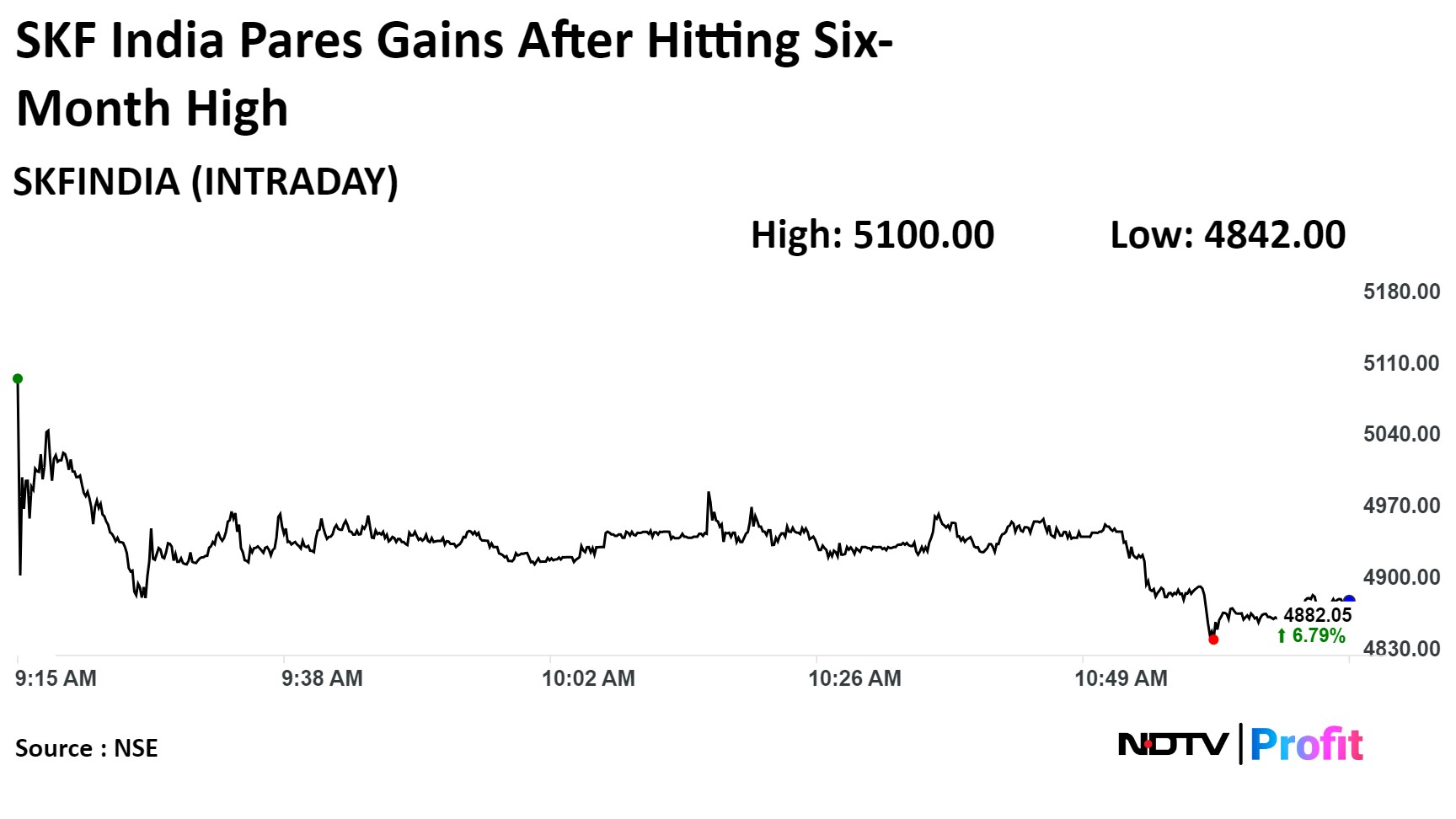 Shares of SKF India Ltd. jumped to six months high, snapping a two-day fall on Thursday after its profit surged beating analysts' estimates.