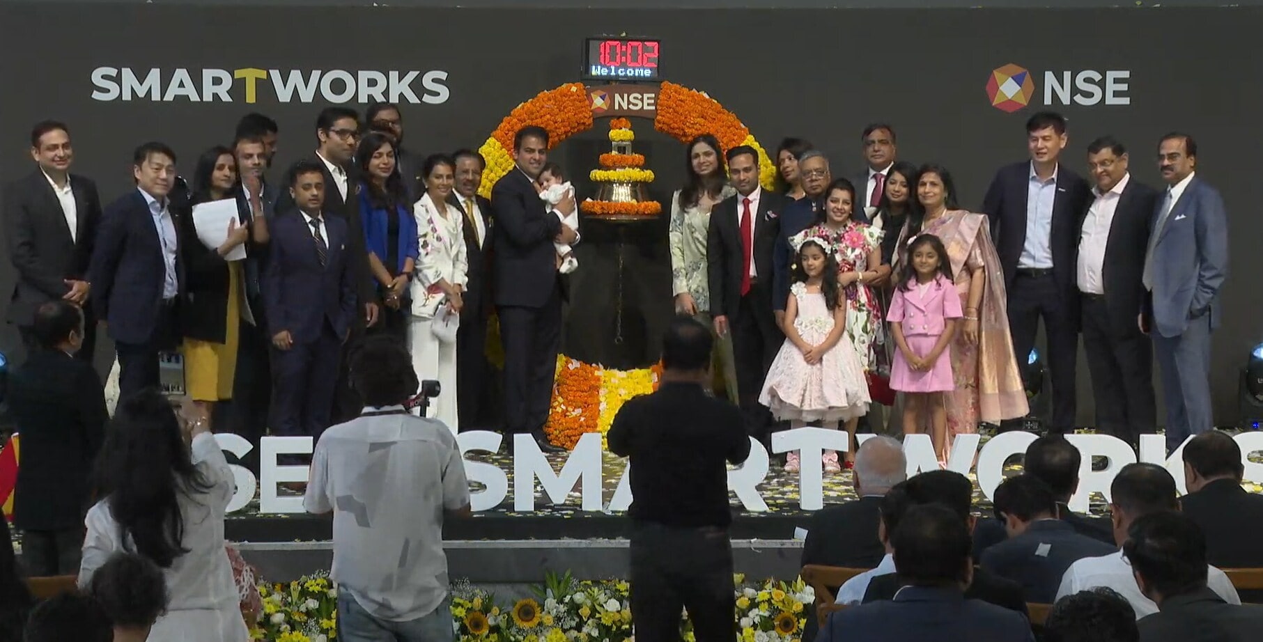 Smartworks Coworking Spaces listing ceremony at NSE. (Image: NSE livestream)