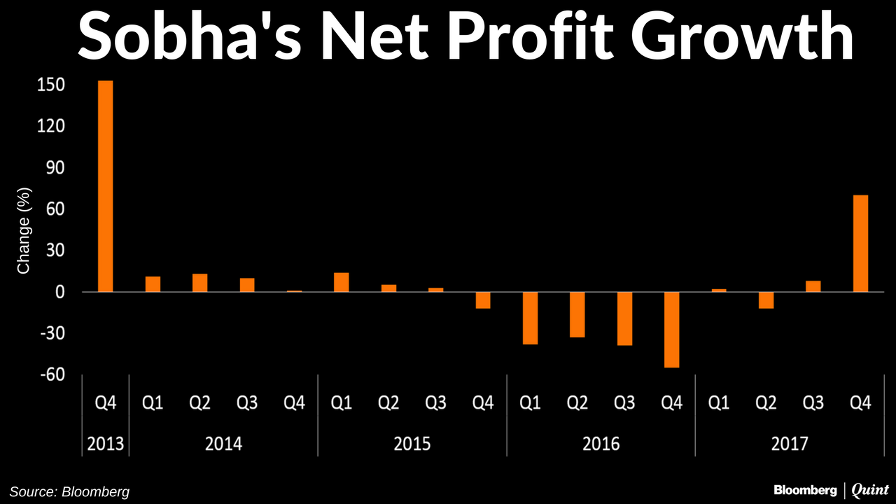 The south-based real-estate developer reported a 70 percent jump in its net profit for the fourth quarter of financial year 2016-17 on Tuesday, its highest increase in the last 16 quarters led by overall growth in business.