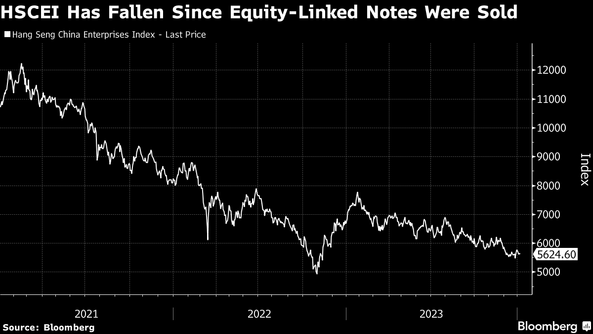 About 15.4 trillion won ($11.7 billion) worth of the equity-linked securities will mature this year as investors couldn't meet the requirements for early redemption, the FSS said in the statement. Some of the notes were sold in 2021 when the HSCEI was above 12,000 whereas the gauge is now trading at less than half that level.