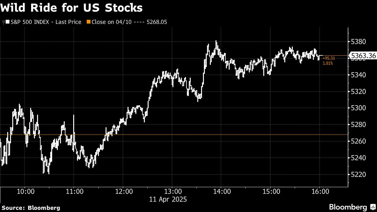 Wall Street's gyrations shook markets anew, with stocks erasing losses to notch their best week since 2023. The rally came as a rout in bonds and the dollar abated, following a few chaotic days that underscored fears foreign investors are beating a retreat from American assets.