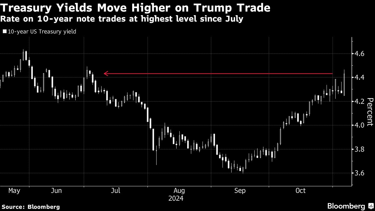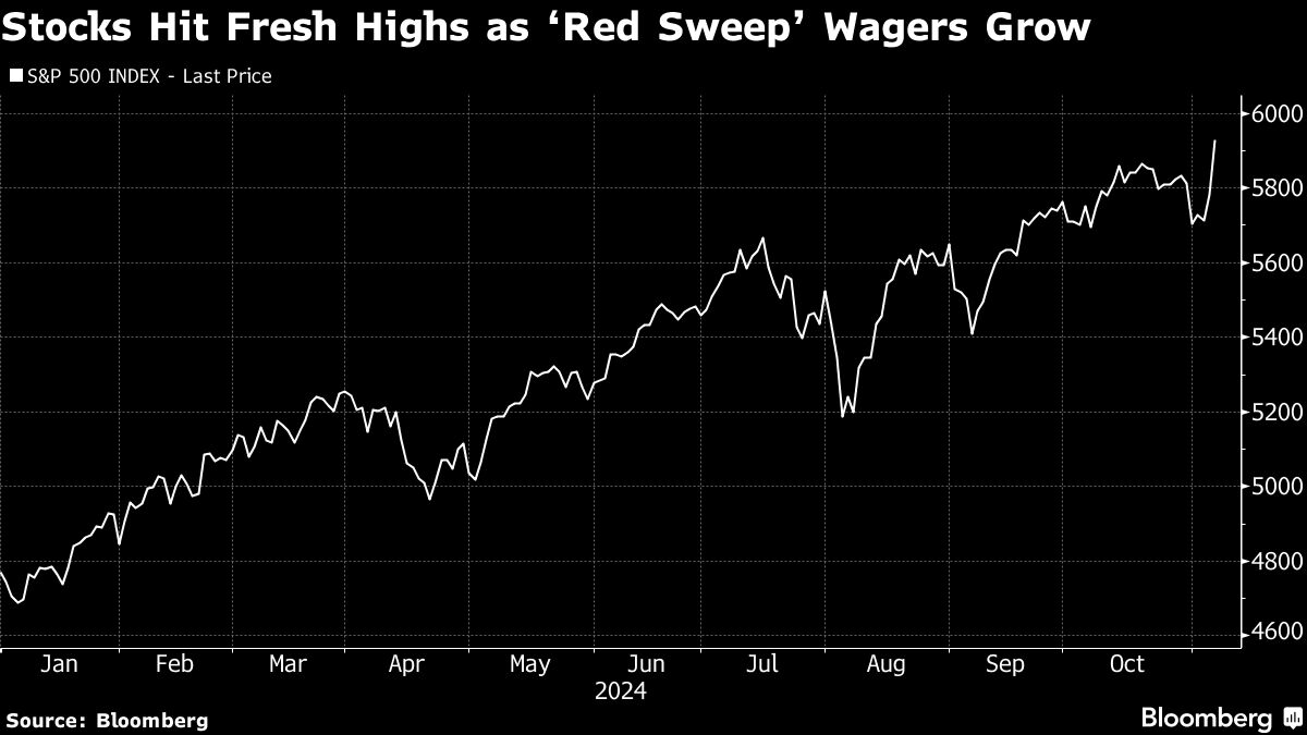Stocks hit all-time highs, US yields jumped and the dollar saw its best day since 2022, with investors mapping out Donald Trump's return to presidency and the potential for Republicans to win both houses of Congress.