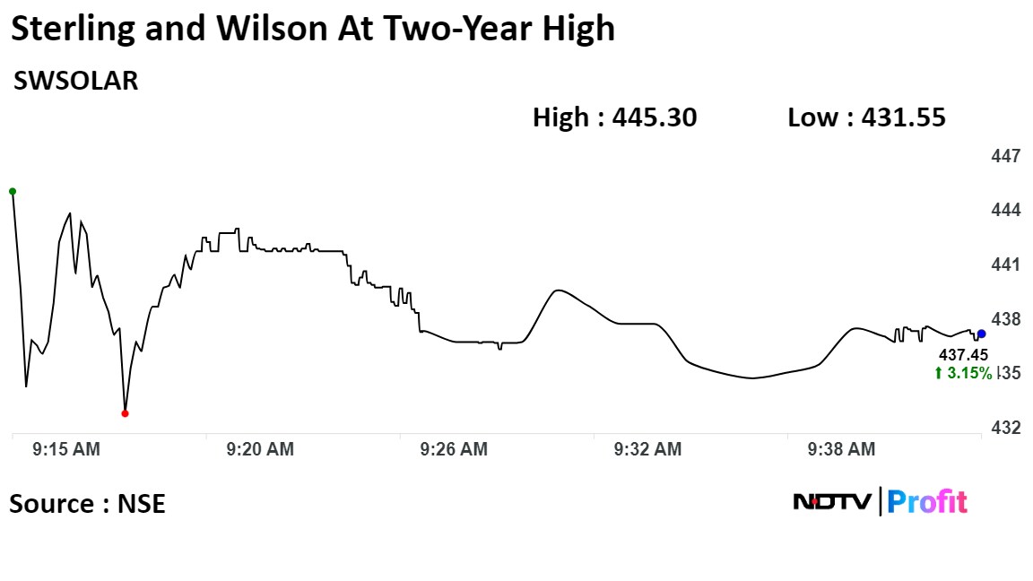 Shares of Sterling and Wilson Renewable Energy Ltd. surged on Friday to the highest level in over two years after it raised Rs 1,500 crore through a qualified institutional placement.