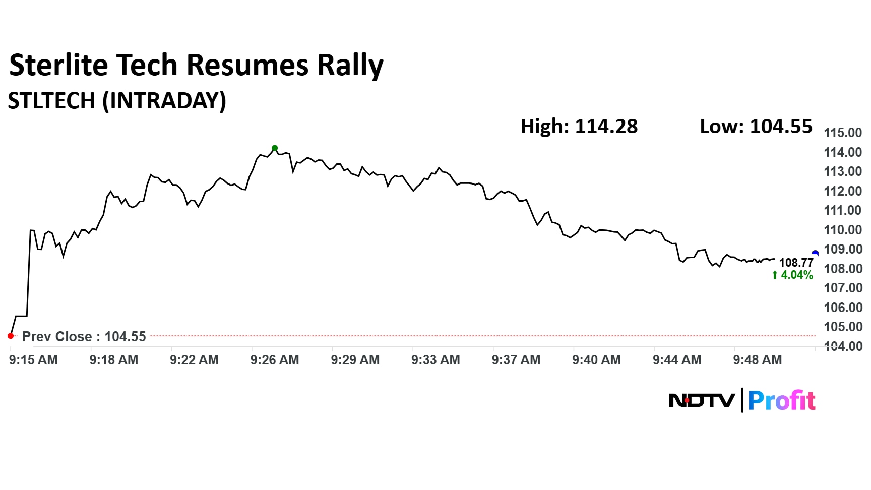 The share price for Sterlite Technologies Ltd. rose over 9% on Thursday, after closing 7.24% lower on Wednesday.