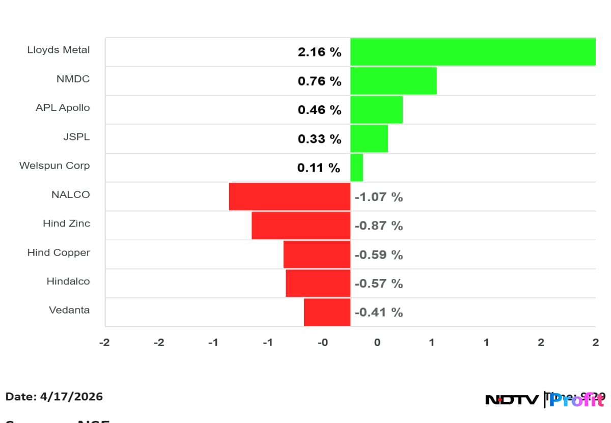 Lloyds Metal gained 2.16% and NMDC rose 0.76%, leading advances in the pack.