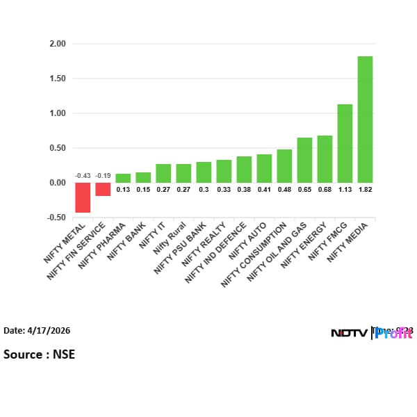 The Nifty Media index was the top gainer, up 1.8%.
