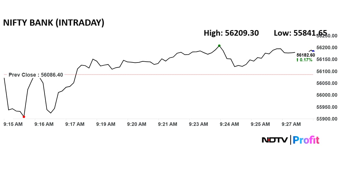 The index touched a high of 56,209.30 and a low of 55,841.65.