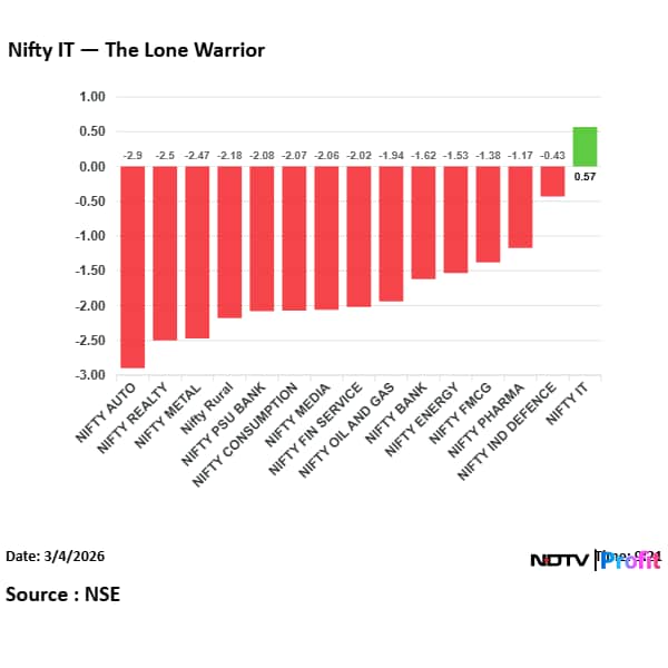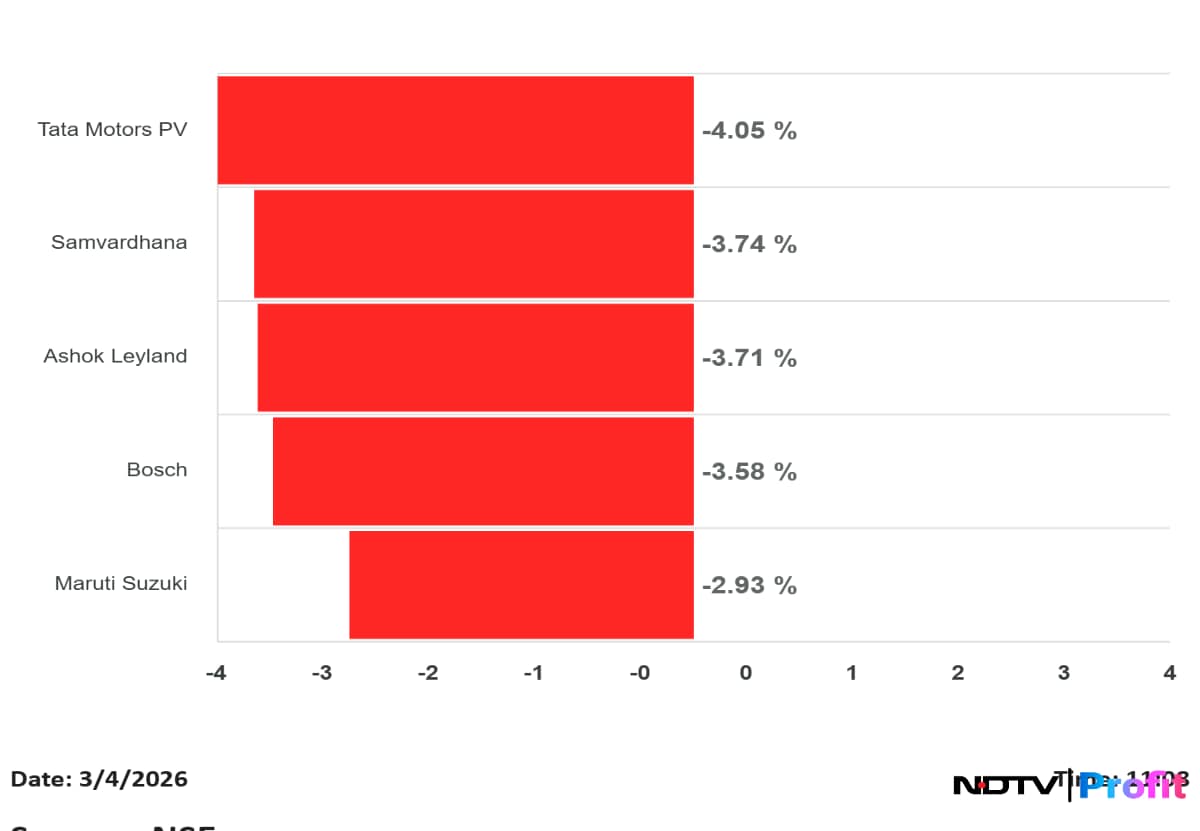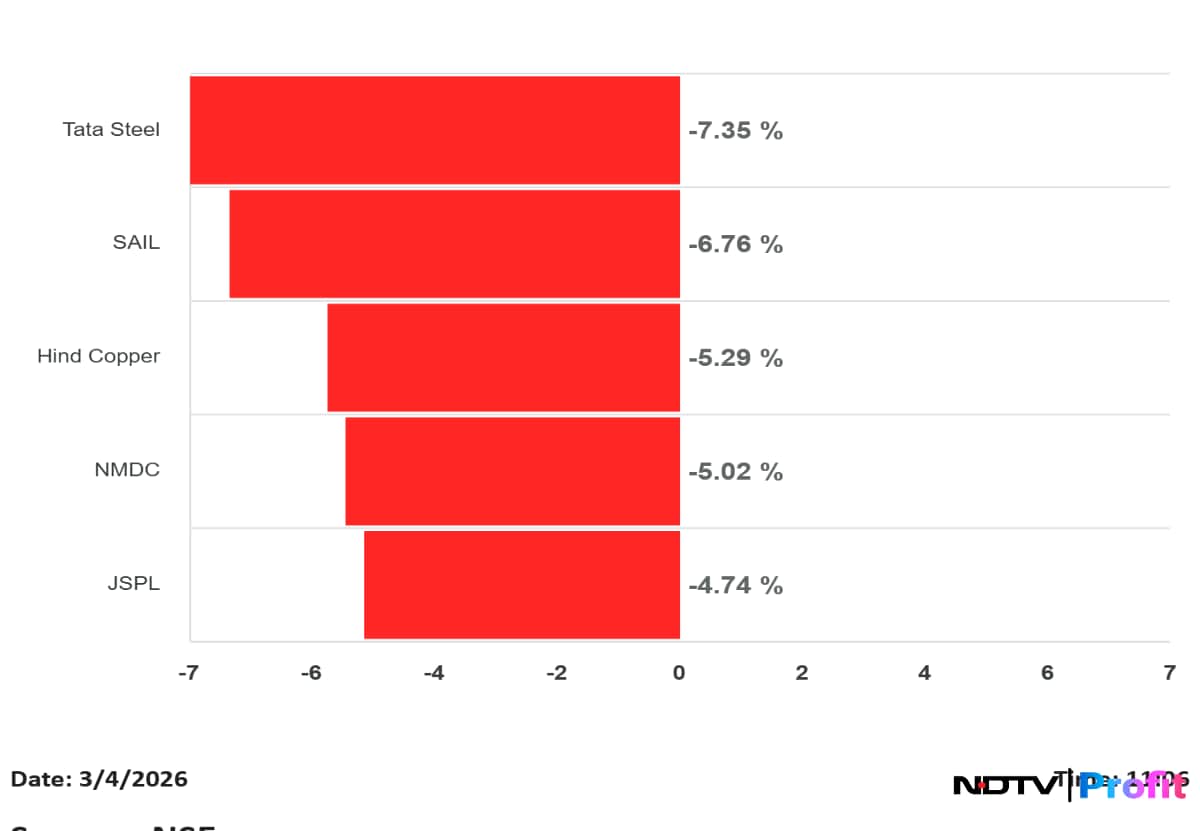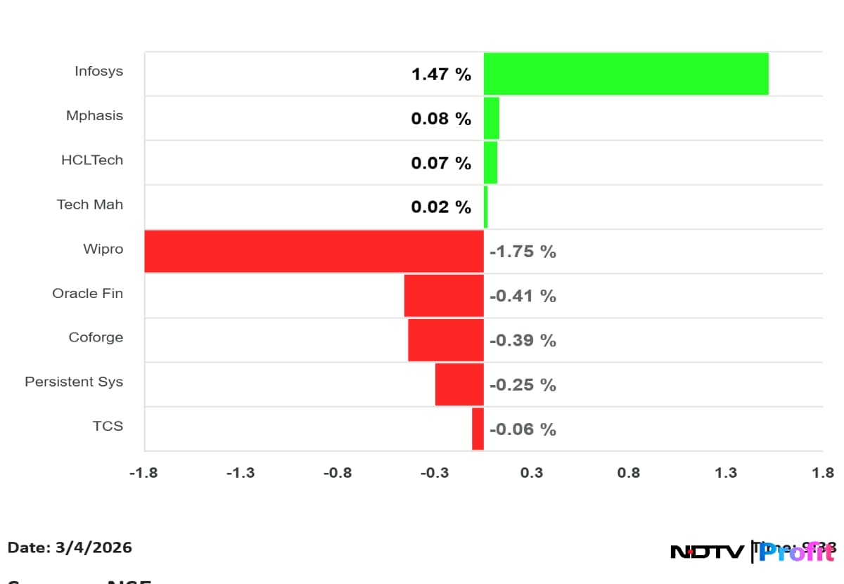 Among the stocks moving the markets today, Bharat Electronics traded around flat after moving between gains and losses, while HAL fell as much as 2% to Rs 3,870. L&T extended its decline to 7% amid concerns over order execution linked to the Middle East situation. Tejas Networks rose as much as 9% and is up over 55% in the last three sessions after its 5G radio deal with NEC.