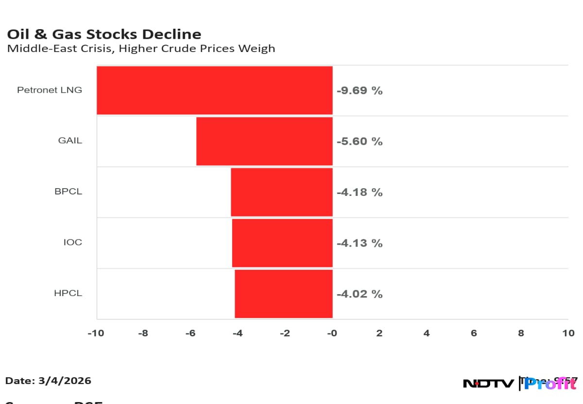 Higher crude prices linked to the Middle East crisis weigh on the oil and gas sector.