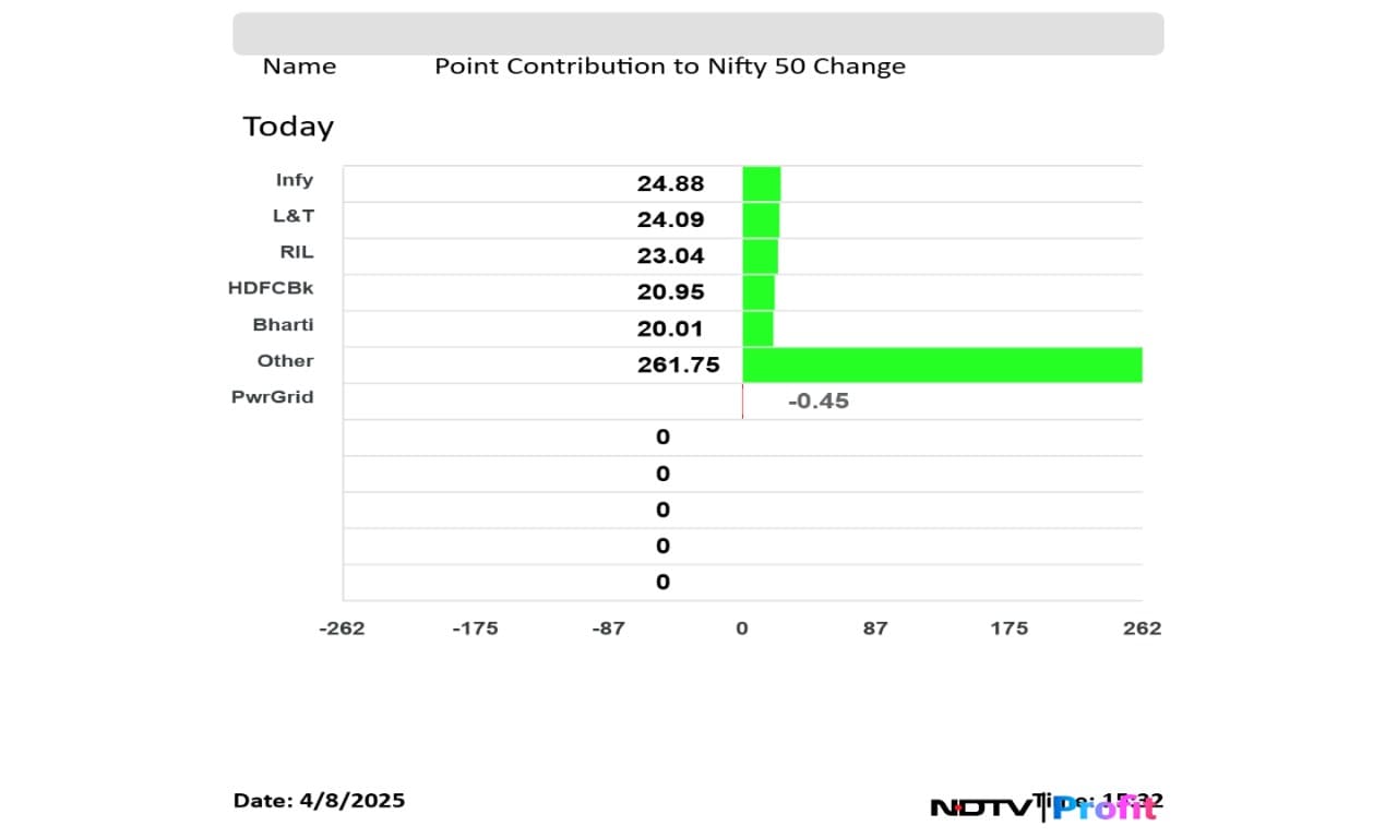 Infosys Ltd., Reliance Industries Ltd., Larsen & Toubro Ltd., Bharti Airtel Ltd. and ICICI Bank Ltd. added to the index the most. On the other hand, Power Grid Ltd. weighed on the Nifty 50.