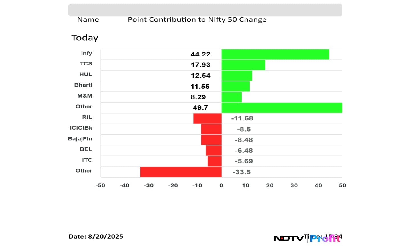 In terms of point of point contribution, Infosys contributed the most, followed by TCS, HUL and Bharti Airtel.