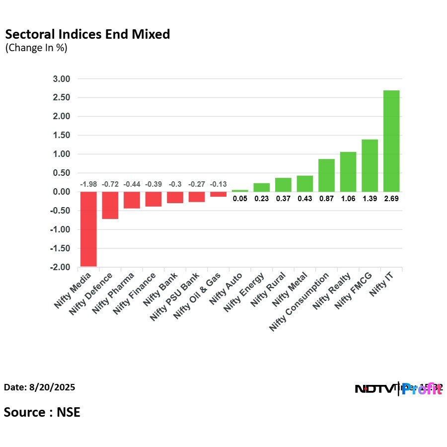 In the Nifty 50, the top gainers were Infosys, TCS, HUL, Nestle, while Bharat Electronics, Bajaj Finance and Shriram Finance were the top losers.