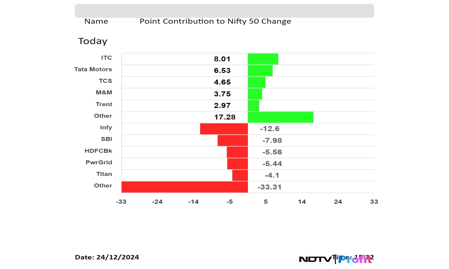 ITC Ltd., Tata Motors Ltd., Tata Consultancy Services Ltd., Mahindra & Mahindra Ltd. and Trent Ltd. added to the Nifty the most.