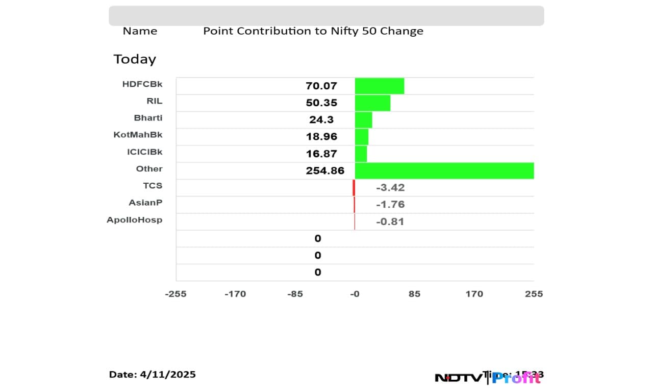 Shares of HDFC Bank Ltd., Reliance Industries Ltd., Bharti Airtel Ltd., Kotak Mahindra Bank Ltd. and ICICI Bank Ltd. weighed on the Nifty 50.