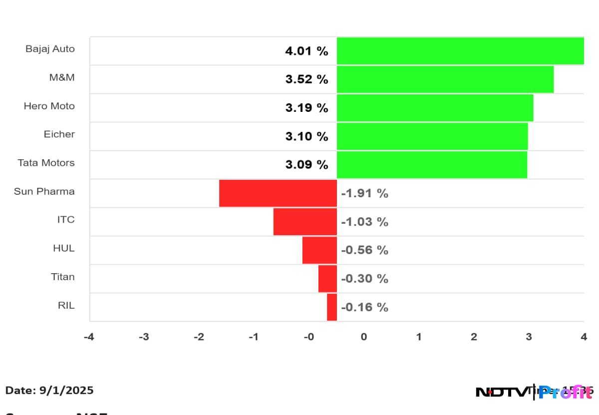 Bajaj Auto and Mahindra & Mahindra were among the top gainers for the day.