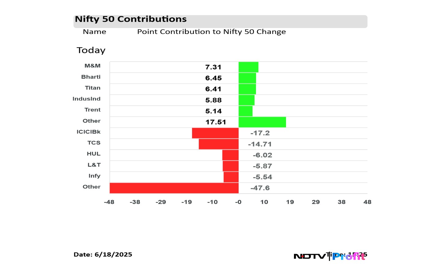 In terms of points contribution, Mahindra & Mahindra Ltd. and Bharti Airtel Ltd. were among stocks that led the gains in the index.