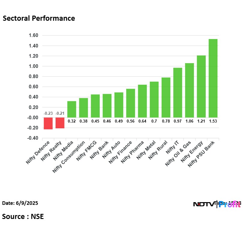 On the NSE, 13 out of the 15 sectors ended in the green, with the PSU Bank, Energy and Oil & Gas among top performers.