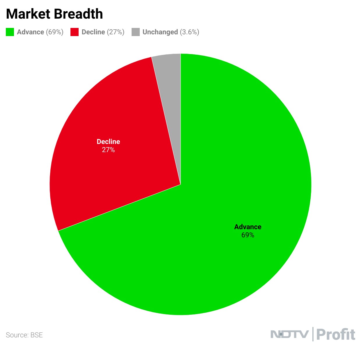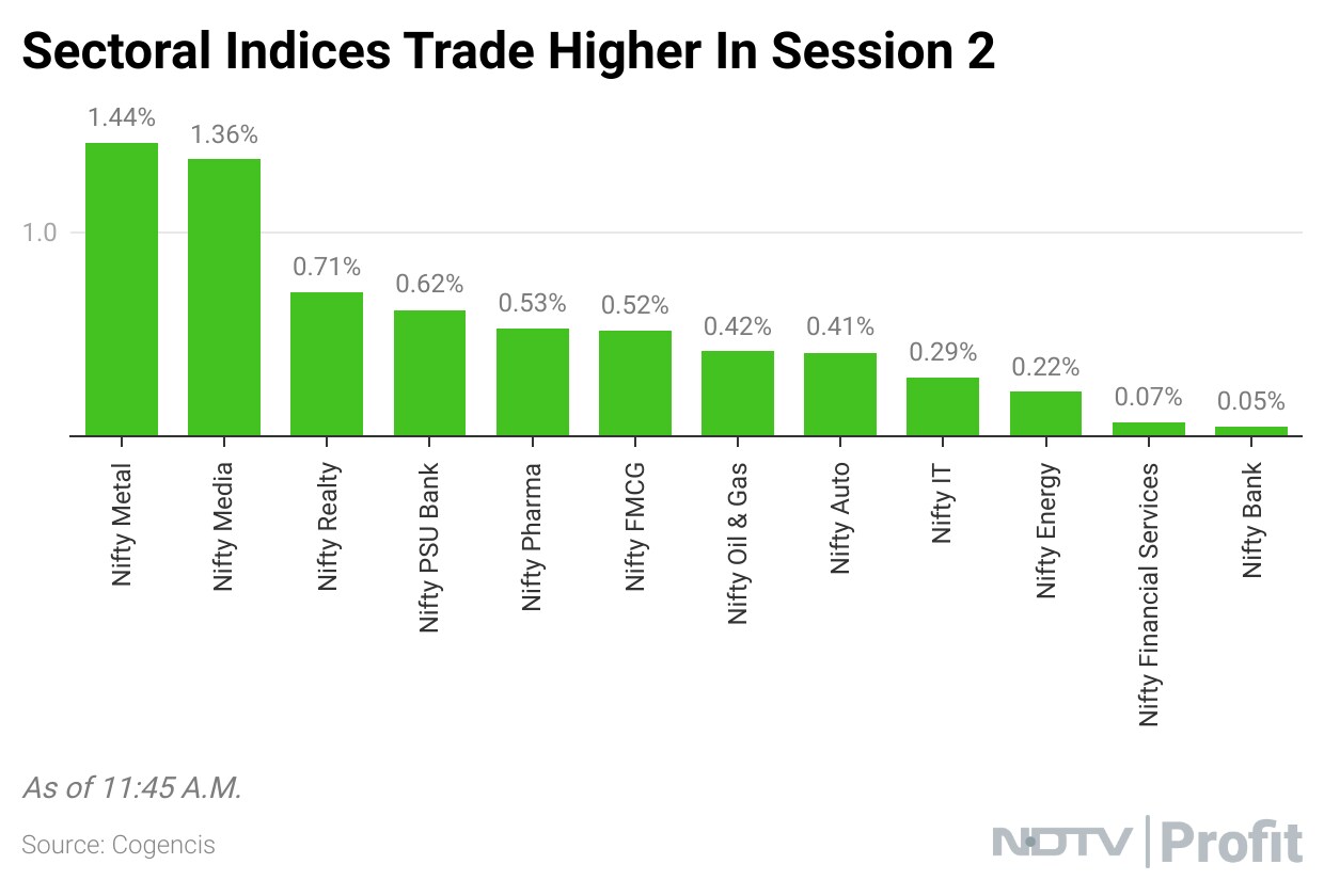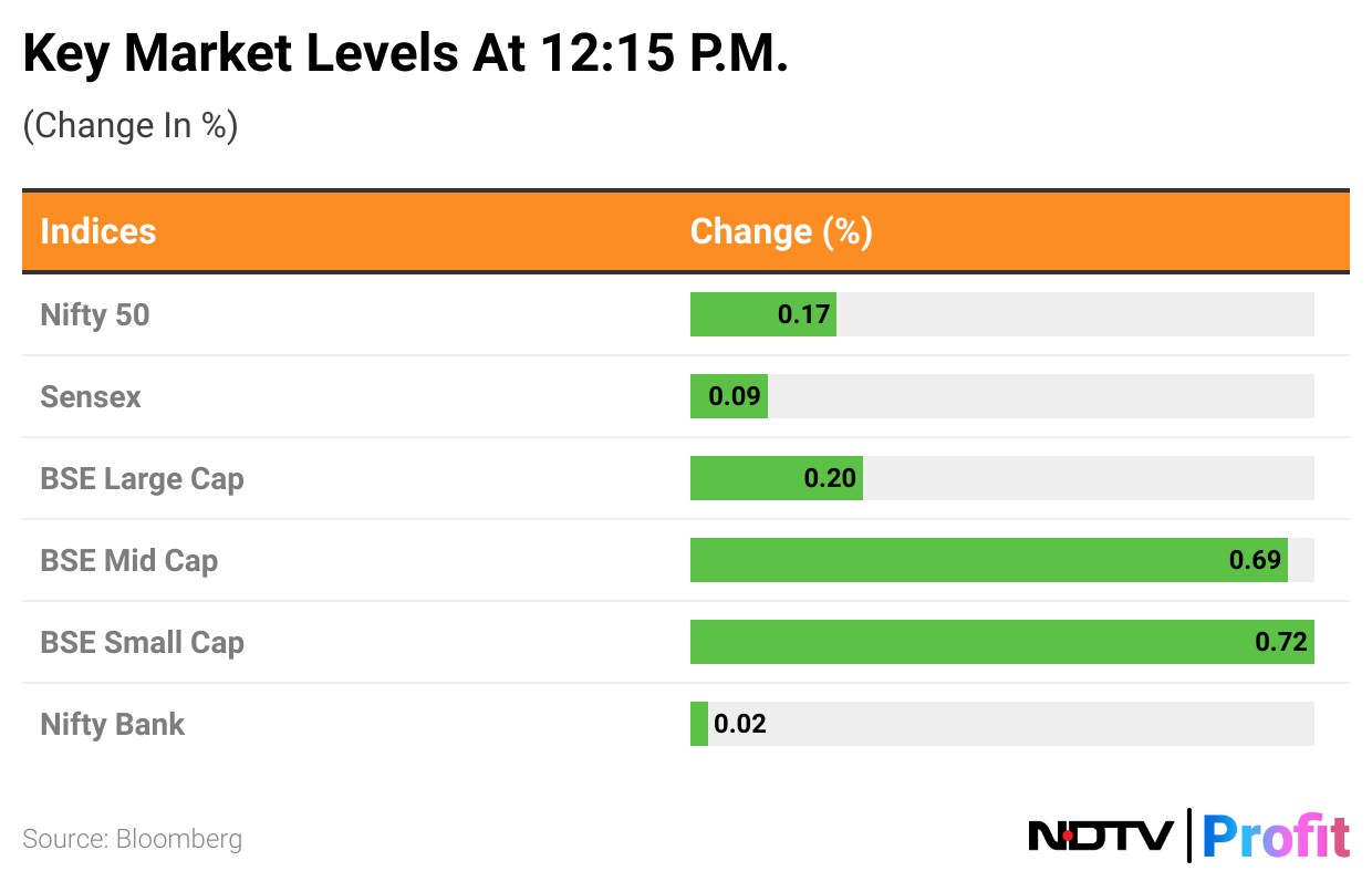 As of 10:00 a.m., the S&P BSE Sensex Index was up 114.91 points, or 0.16%, at 73,860.19 while the NSE Nifty 50 was 56.25 points or 0.25% higher at 22,395.
