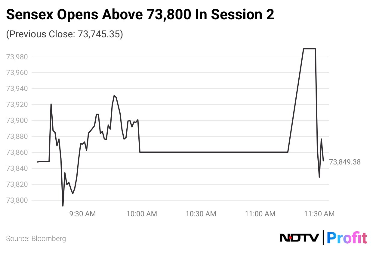 At the pre-open of session 2, the S&P BSE Sensex Index was up 244.70 points, or 0.33%, at 73,990.05 while the NSE Nifty 50 was 69.65 points or 0.31% higher at 22,408.4.