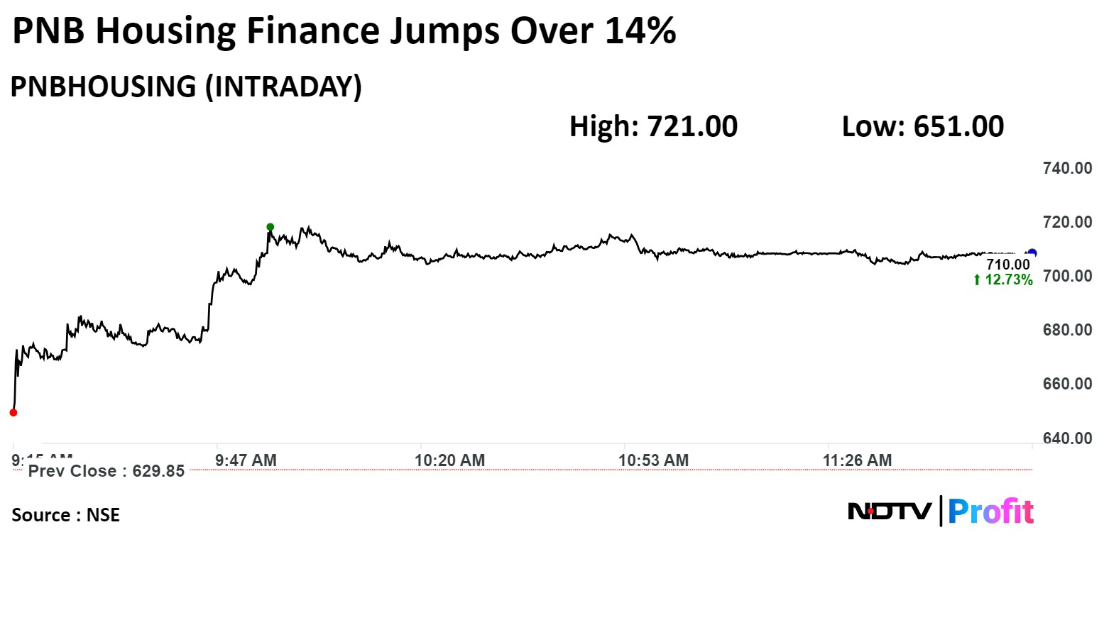PNB Housing Finance Ltd. rose 14.47% to Rs 721.00, the highest level since Sep 24, 2018. It was trading 12.68% higher at Rs 709.70 as of 12:07 p.m., as compared to 0.68% advance in the NSE Nifty 50 index.