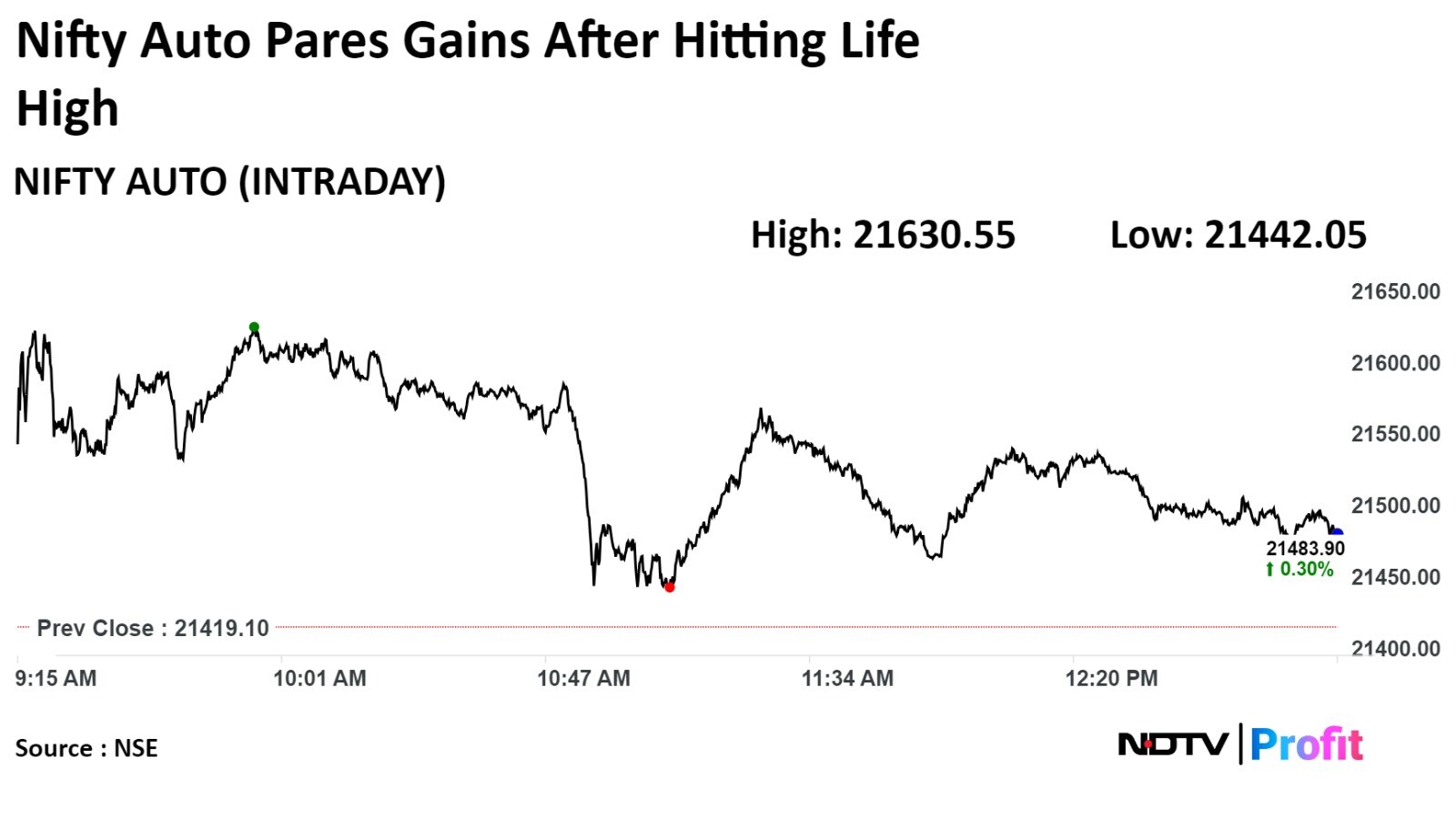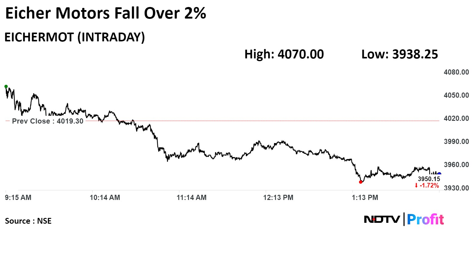The NSE Auto index fell the most among sectoral indices dragged by losses in Eicher Motors Ltd., Bajaj Auto Ltd.
