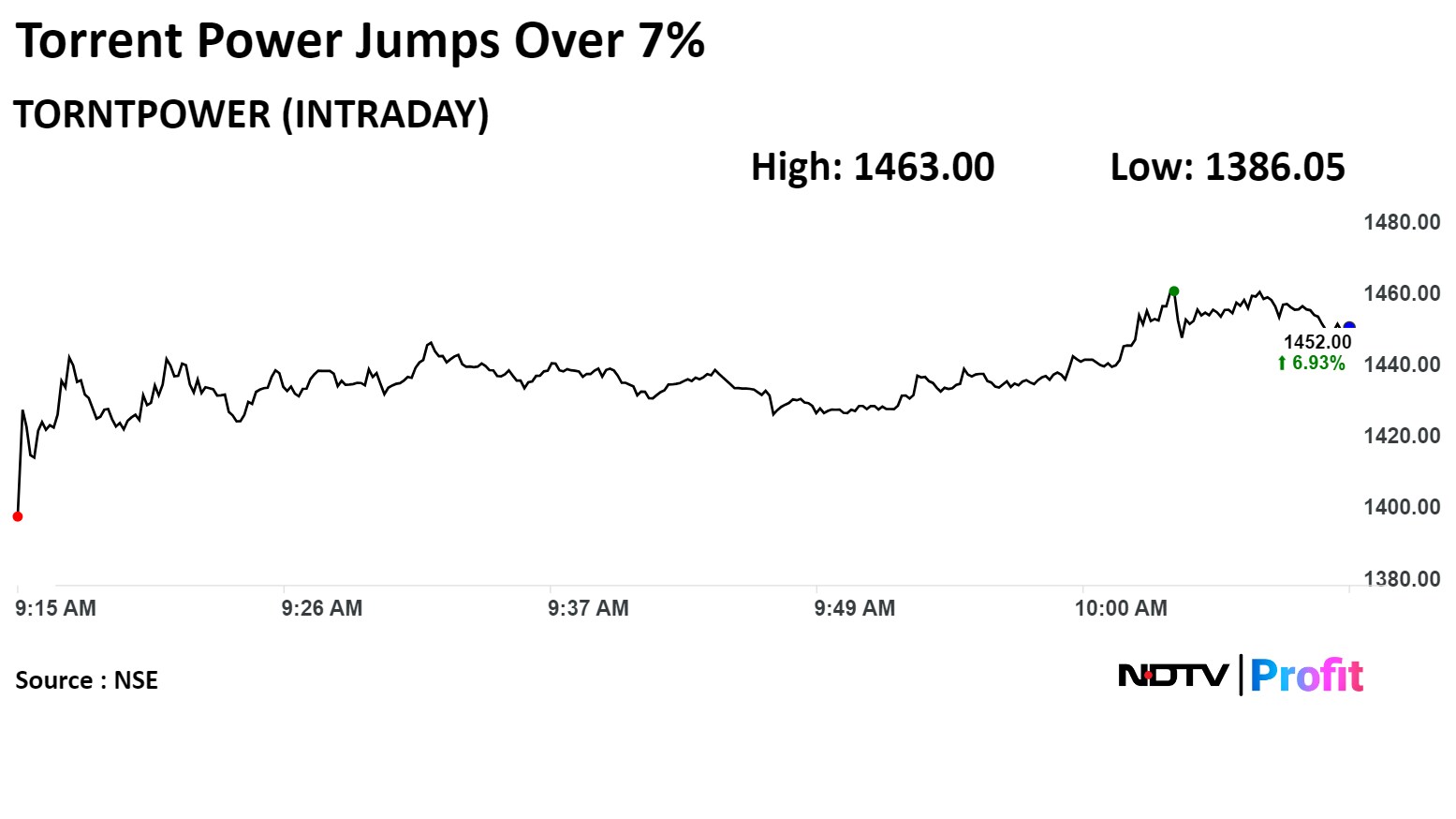 The scrip rose as much as 7.74% to Rs 1,463.00 apiece, the highest level since March 27. It was trading 7.29% higher at Rs 1,457.00 apiece, as of 10:07 a.m. This compares to a 0.79% advance in the NSE Nifty 50 Index.