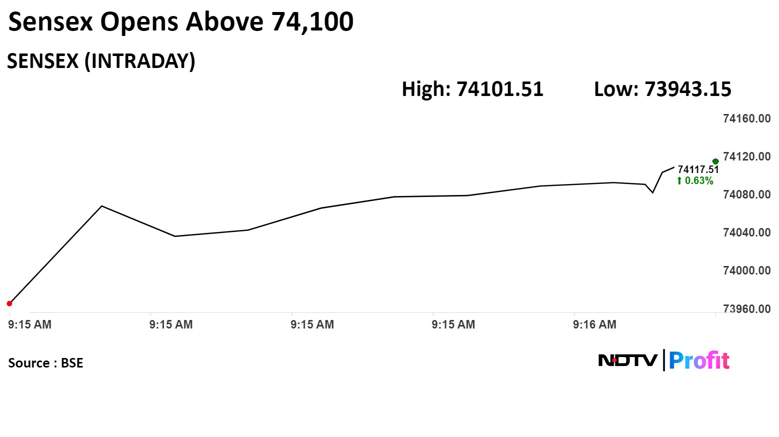 Extending gains for a third day in a row, India's benchmark share indices opened higher in the first trading session of FY25 as HDFC Bank Ltd., and Infosys Ltd. rose.