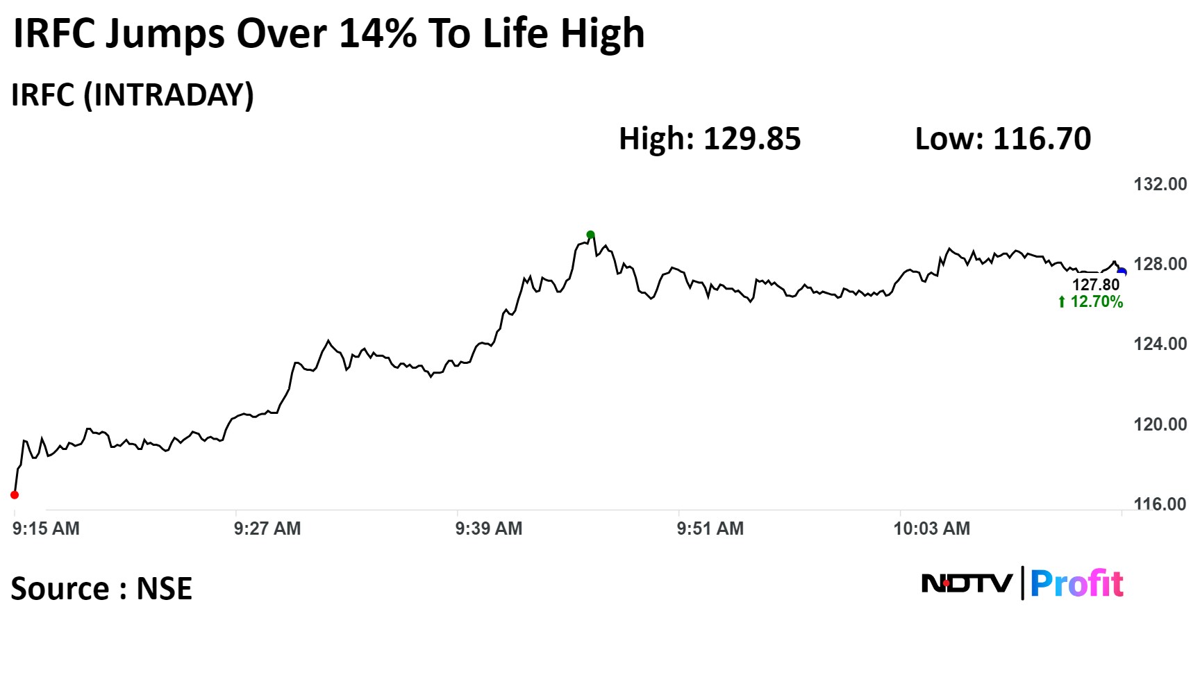 The scrip rose as much as 5.11% to Rs 1,619.60 piece, the highest level. It pared gains to trade 2.55% higher at Rs 1,580.15 apiece, as of 11:16 a.m. This compares to a 0.7% advance in the NSE Nifty 50 Index.