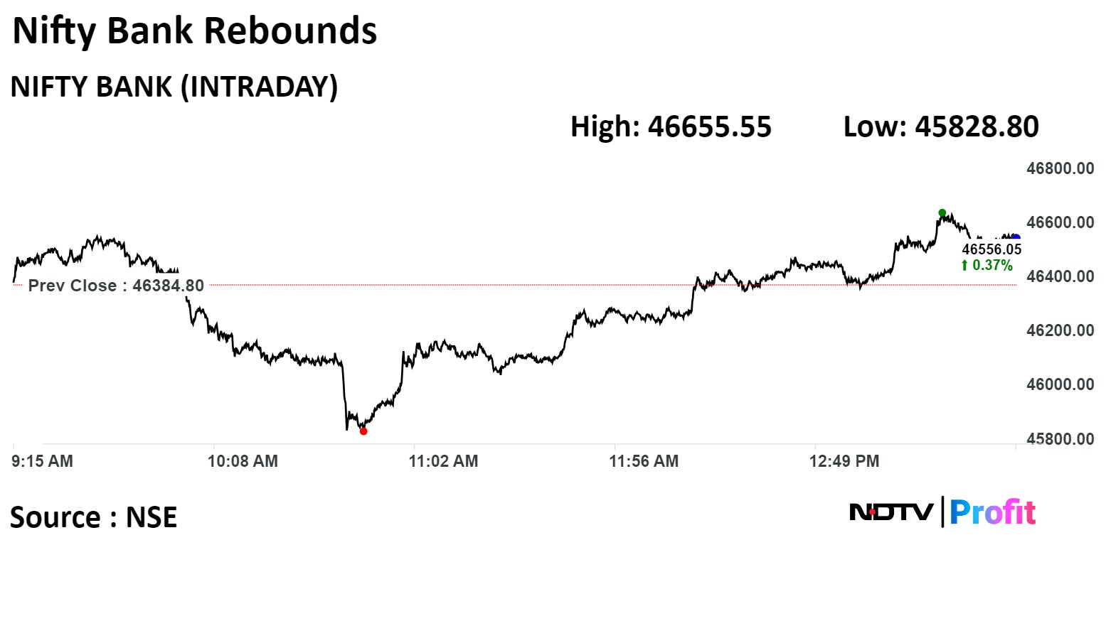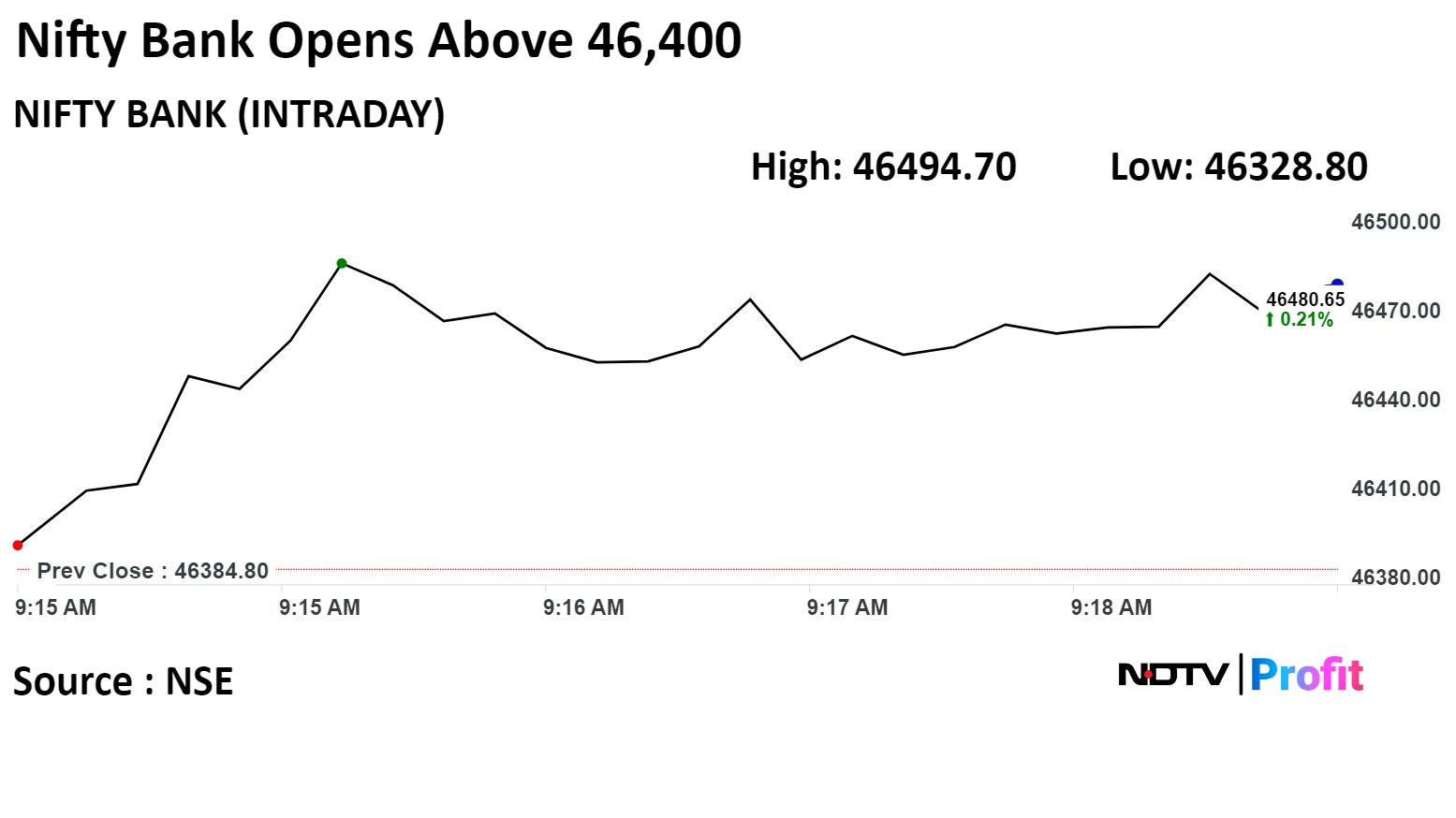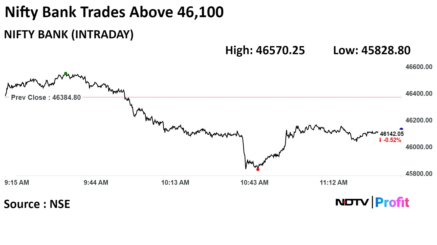 At 11:51 a.m., the Nifty traded 28.85 points, or 0.13%, higher at 21,846.30, while the Sensex gained 113.45 points, or 0.16%, to trade at 72,125.49.