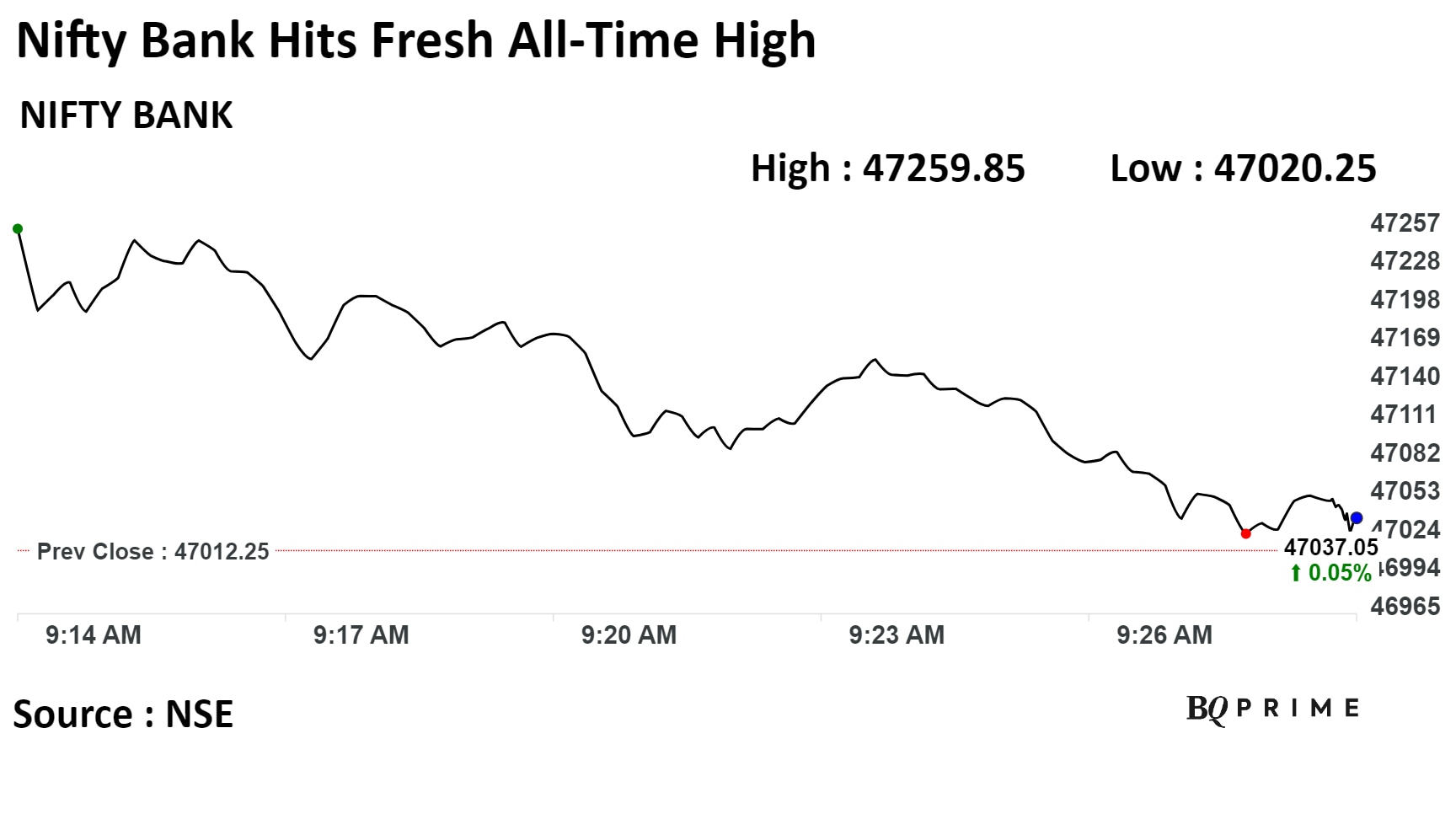 "Bank Nifty after the breakout confirmation extended the gains further moving past the 47000 zone to make new high. Bank Nifty would have a daily range of 46700–47500 levels," said Vaishali Parekh, Vice President - Technical Research, Prabhudas Liladher.