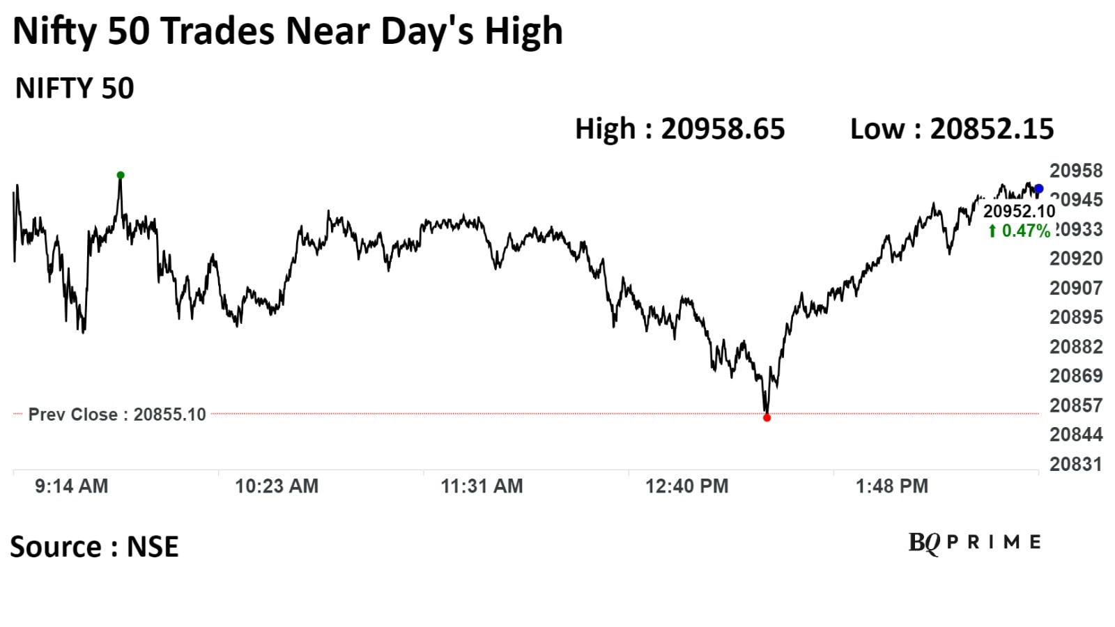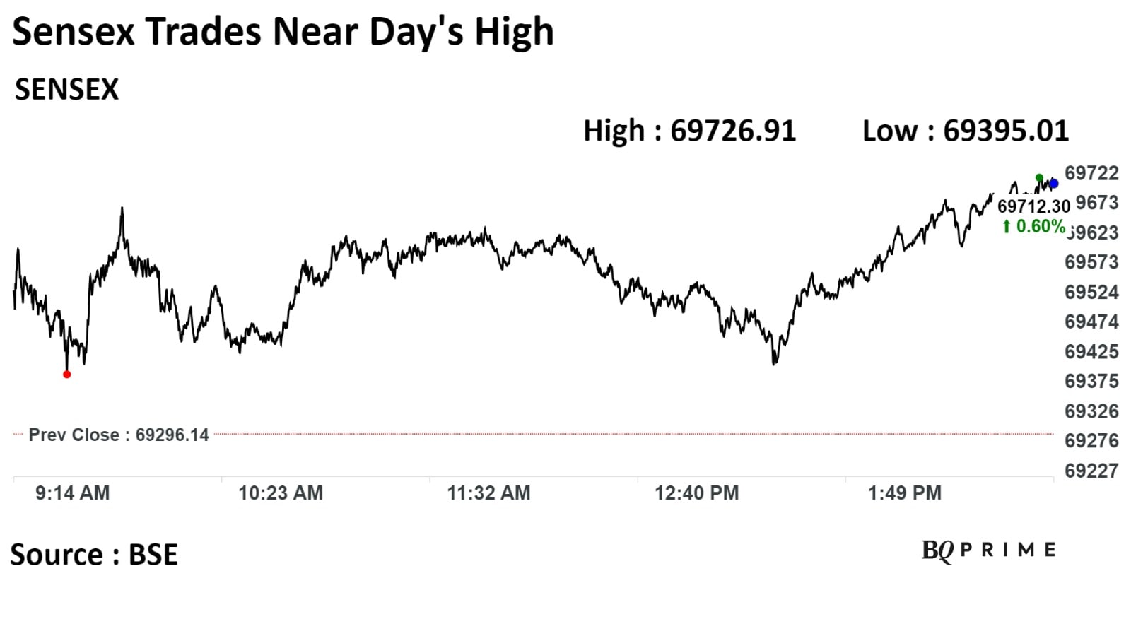 Intra-day, the Nifty rose to a lifetime high of 20,958.65, while the Sensex hit a record high of 69,673.83.