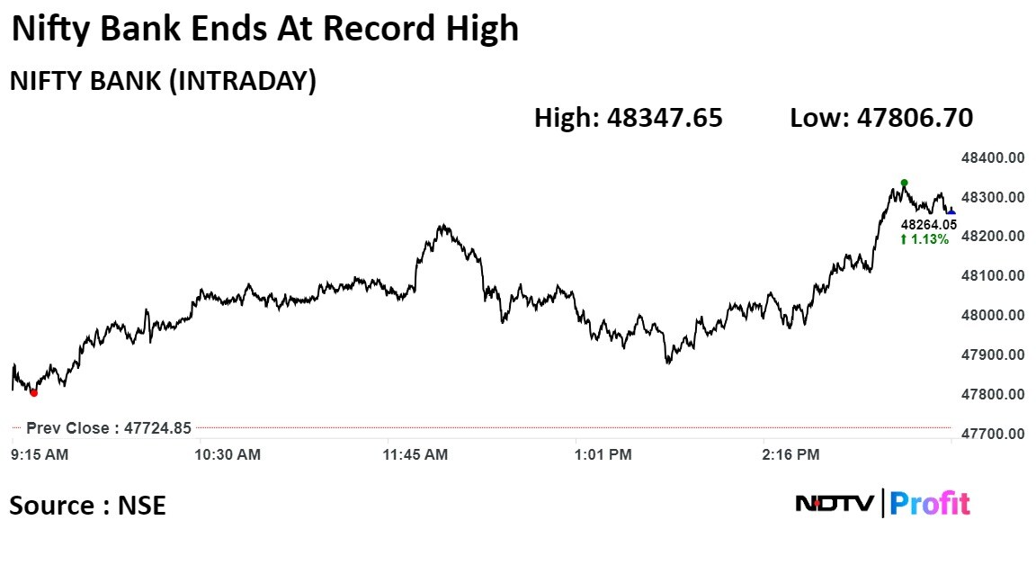 Shares of HDFC Bank Ltd., IndusInd Bank Ltd., and State Bank Of India Ltd. contributed the most to the gains in the index.