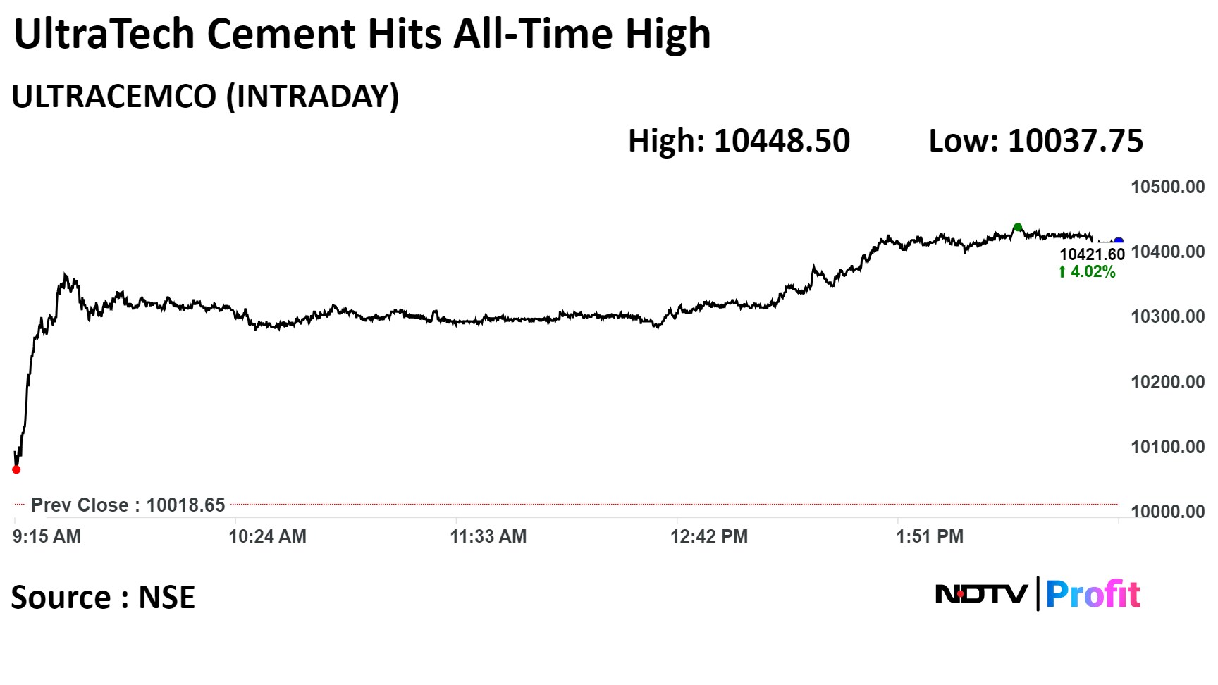 UltraTech Cement Ltd.'s market capitalisation crossed the Rs 3 lakh crore mark as its shares hit an all-time high on Wednesday.