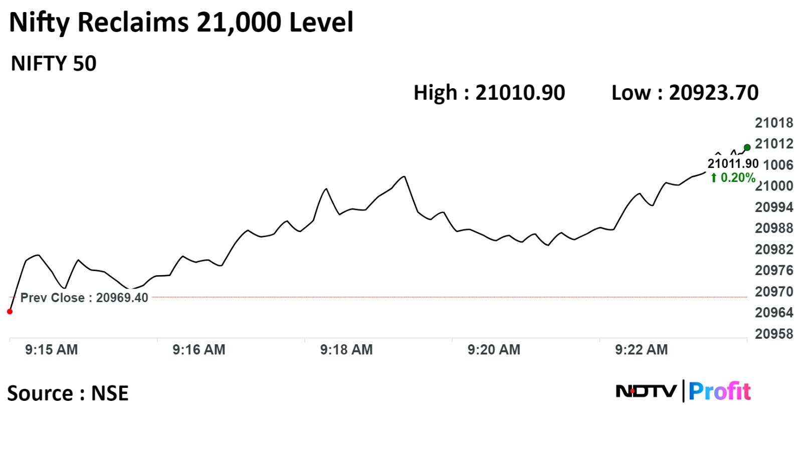 Intraday, the Nifty 50 reclaimed the 21,000 level and the Sensex crossed 70,000 for the first time.